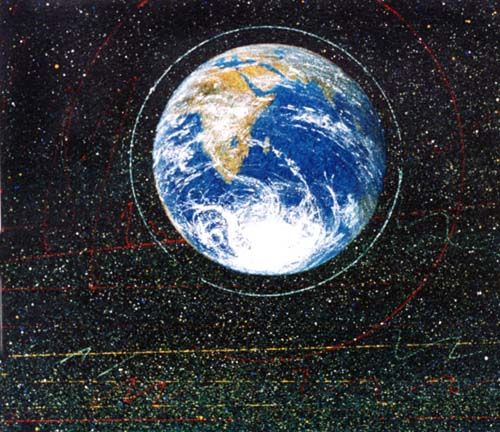 My “Earth Energies” series of paintings are focused on the “overview” of planet Earth situated in a cosmic environment full of energy, resources and activity. As gravity already exerted a significant influence on my art, the message embodied in these works is that Earth's physical boundary is not limited to its atmosphere but extends outward to its real cosmic boundary - that which is defined by Earth’s own gravitational influence in its immediate cosmos - Greater Earth.